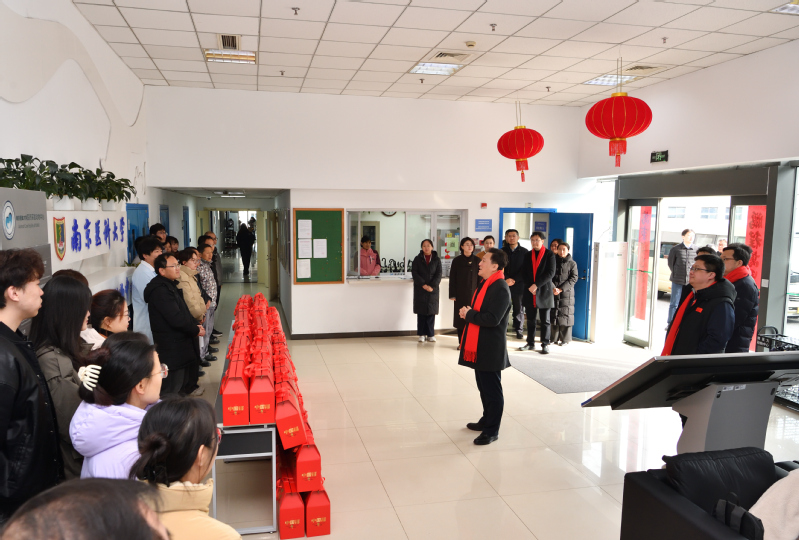 新春佳节将至,2月9日上午,校党委书记兰青、校长胡志斌、副校长沈瑞林、岳国峰、夏彦恺、沈历宗等一行来到动物中心,亲切看望并慰问了春节期间仍坚守在工作岗位的一线教职员工,向他们致以诚挚的节日问候和美好的新春祝福。