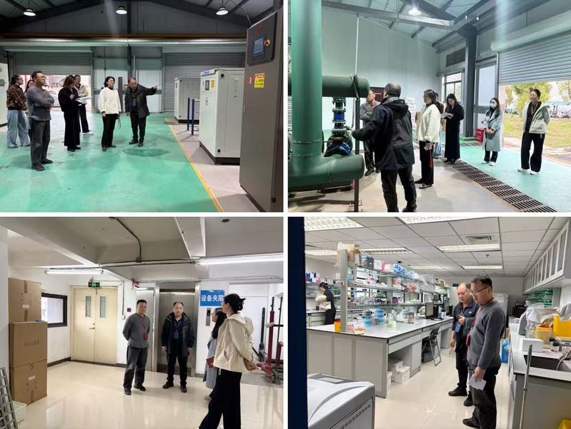 检查组先后前往中心冷热站、生产繁育楼以及重点实验室等关键部位。在冷热站,检查组仔细重点核查设备运行状态;在生产繁育楼,着重检查了消毒设施、饲料存储环境;在重点实验室,则围绕危化品管理及通风防护设施等内容进行排查,并就安全制度落实与实验操作规范与现场人员进行了交流。