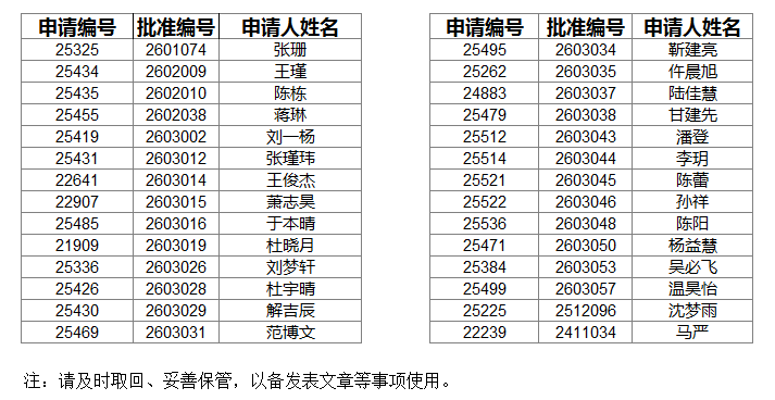 动物伦理同意书取回名单(2026-04-03)
