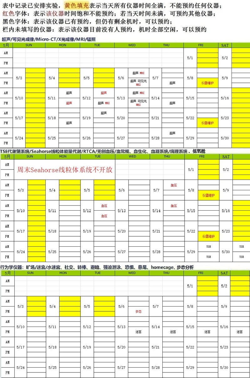 2026年5月项目技术部大型仪器预约情况表(26-04-14)